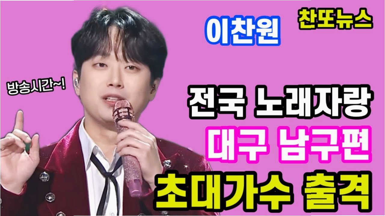 이찬원, '전국노래자랑' 대구 남구 편 초대 가수로 나선다가수 이찬원이 '전국노래자랑' 대구광역시 남구 편에 초대 가수로 출연합니다. 이번 방송은 2152회차로, 대구도서관 서편 특설 무대에서 펼쳐지며 15개 참가팀이 다채로운 무대를 선보일 예정입니다. 이찬원은 고향 무대에 서는 기쁨을 안고 '오늘은 왠지', '진또배기'를 열창하며 관객들의 뜨거운 호응을 이끌어냈습니다. 다채로운 참가팀과 화려한 초대 가수 라인업이번 '전국노래자랑' 대구 남구 편에는 흥미로운 참가팀들이 대거 등장합니다. 엄마와 12살 터울의 형제로 구성된 가족 팀, 초등학생 4인조 댄스팀, 7살 유치원생 3인방 등 다양한 연령과 구성의 참가자들이 개성 넘치는 무대를 꾸밉니다. 또한 미스김, 문연주, 김성환, 트윈걸스 등 실력파 초대..