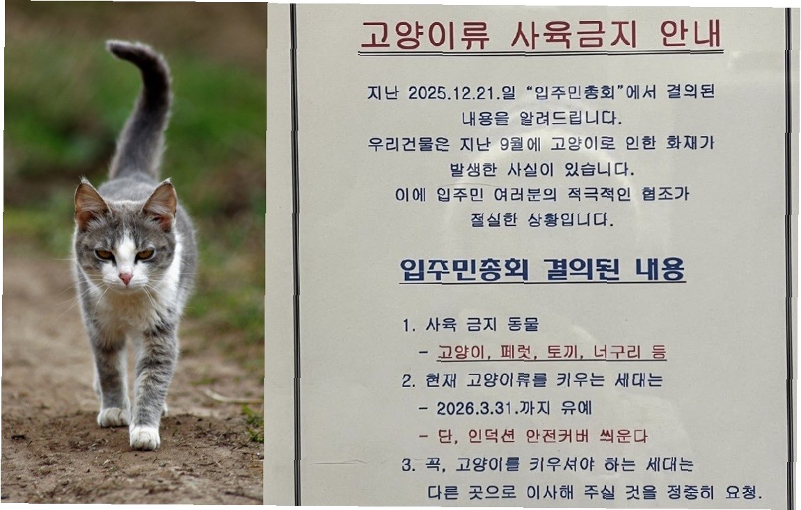 고양이와 함께 살 권리 vs. 안전, 인천 오피스텔 공지 논란, 당신의 생각은?