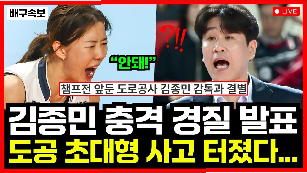 2025~2026 V리그 여자부 정규리그 1위를 이끈 김종민 감독이 챔피언결정전 지휘봉을 잡지 못하게 되었습니다도로공사 구단은 'A코치 폭행 및 명예훼손 사건에 대한 검찰의 약식기소'를 이유로 재계약을 하지 않기로 결정했습니다. 김 감독과 구단의 계약은 이달 말 만료됩니다.