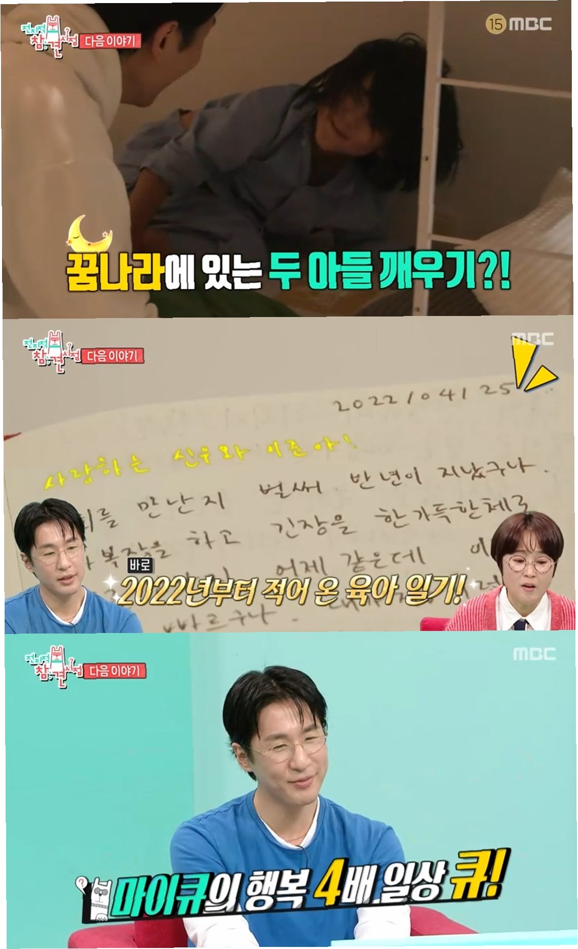 A.'전참시'에서 마이큐는 신혼 일상과 두 아들과의 다정한 모습, 3년 동안의 육아 일기를 공개했습니다.