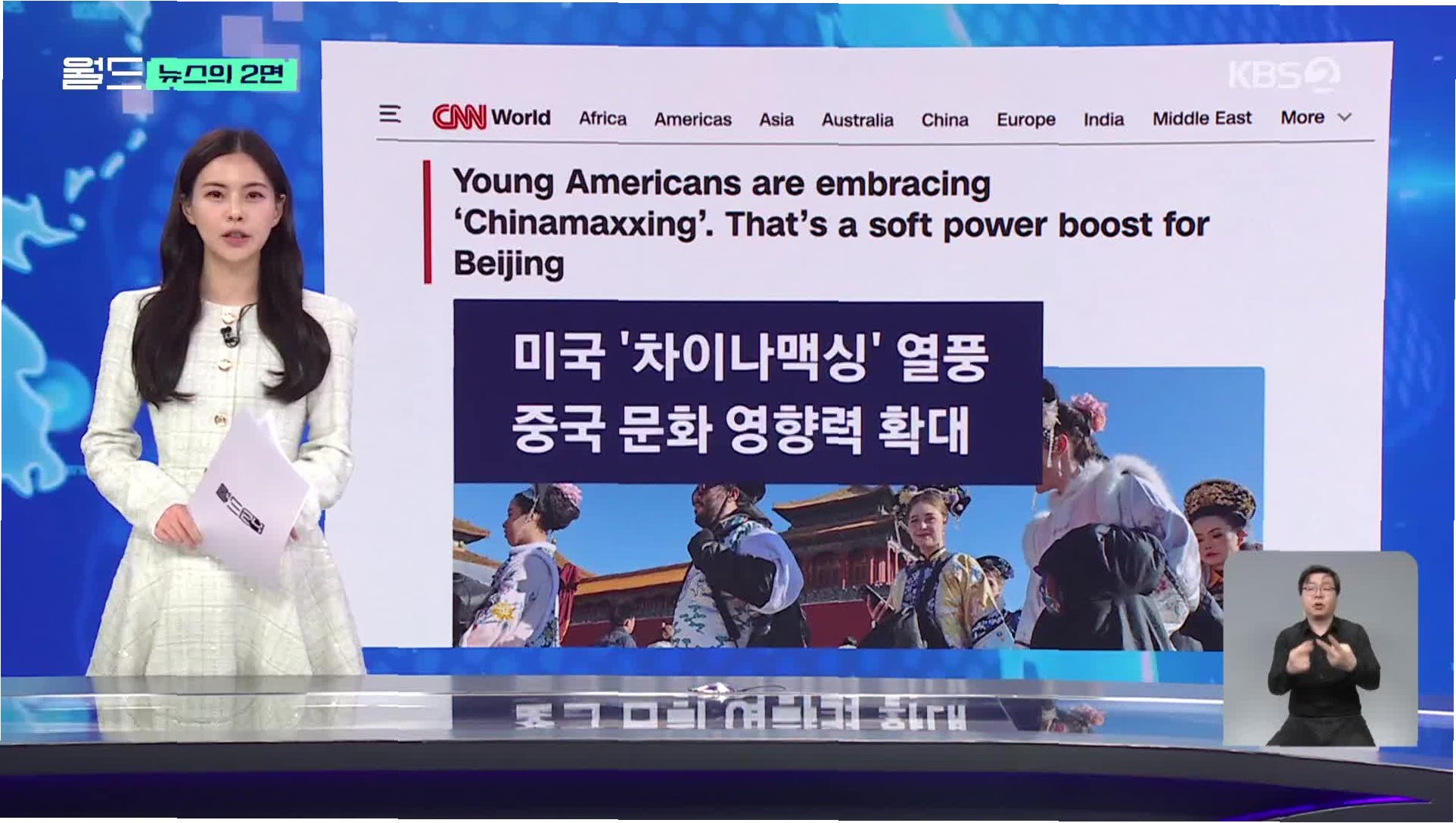 A.'차이나 맥싱'은 미국 Z세대 사이에서 중국의 전통 의상, 음식, 건강법 등 일상 문화를 적극적으로 따라 하고 즐기는 현상을 지칭합니다. 'Becoming Chinese'라고도 불립니다.