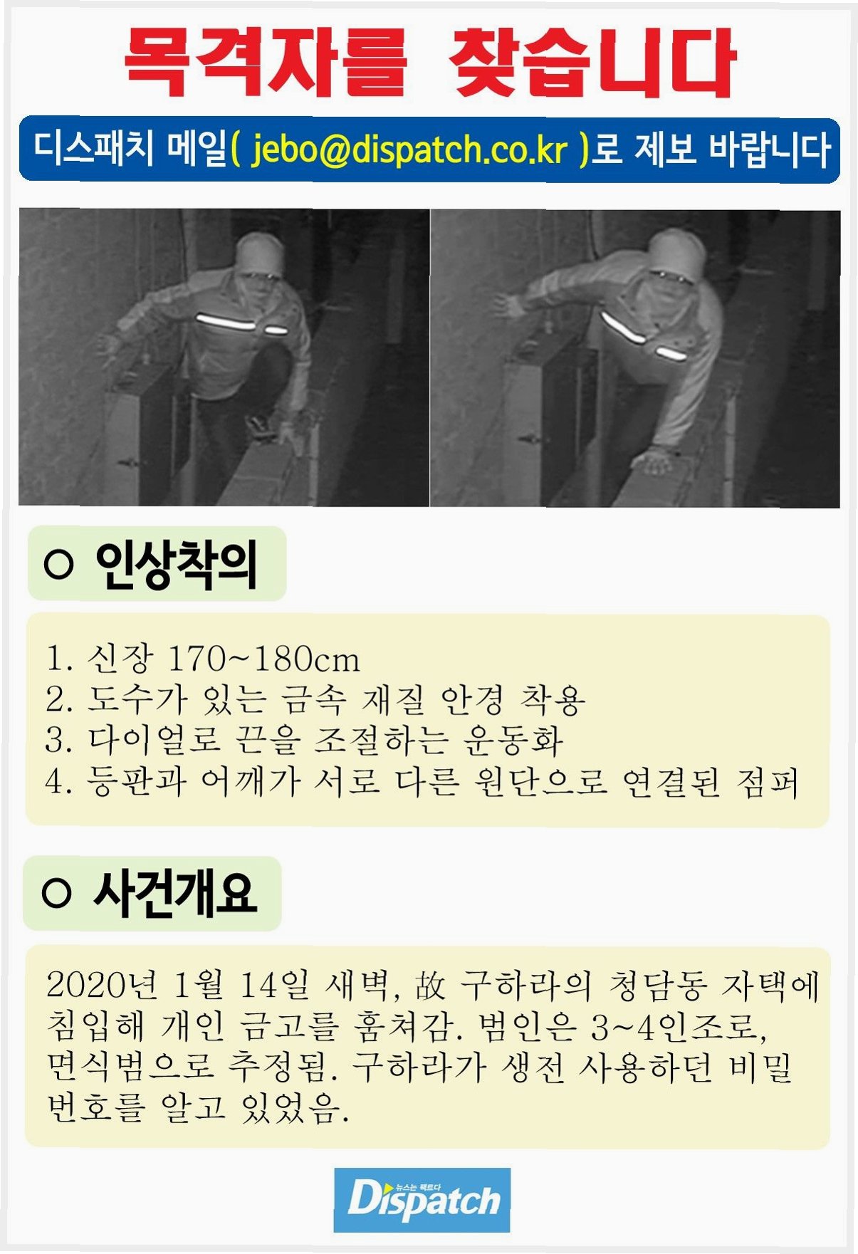 A.그는 비상문을 통해 도주했지만, 현장에 남겨진 혈흔과 CCTV 영상을 통해 경찰에 덜미를 잡혔습니다.