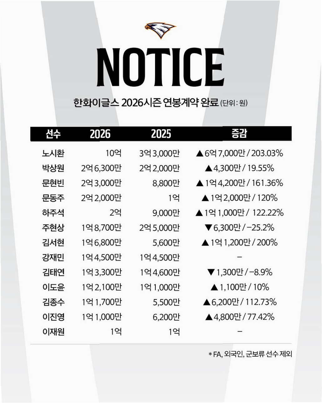 문현빈 선수는 지난 시즌 데뷔 이후 최고의 시즌을 보냈습니다. 141경기에 출전하여 169안타, 12홈런, 80타점, 71득점, 17도루를 기록하며 타율 0.320을 달성했습니다. 이는 데뷔 첫 3할 타율 달성이었으며, 최다안타 부문 4위, 타율 부문 5위에 오르는 쾌거를 이뤘습니다. 이러한 활약을 바탕으로 그의 연봉은 종전 8800만원에서 무려 161.36%가 인상된 2억 3000만원에 계약했습니다. 이는 노시환 선수에 이어 야수 중 최고 인상률 2위를 기록하는 놀라운 성과입니다.