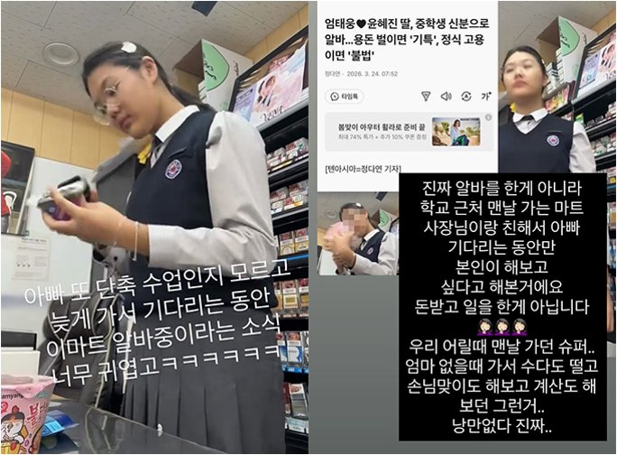 윤혜진은 자신의 SNS를 통해 딸 엄지온의 편의점 아르바이트 논란에 대해 직접 입을 열었습니다. 일부에서 미성년자 알바는 불법이 아니냐는 의혹이 제기되었으나, 윤혜진은 '돈을 받고 한 것이 아니라 그냥 해본 것'이라고 해명했습니다. 이는 정식 근로 형태가 아닌 단순 체험이었음을 강조한 것입니다.