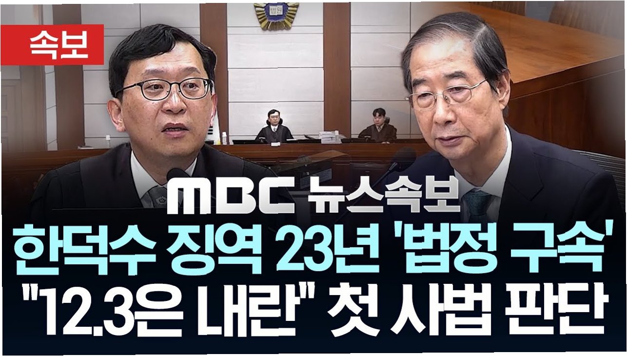 전직 국무총리 한덕수, '내란 중요임무 종사' 혐의로 징역 23년 선고 및 법정 구속. 12·3 내란은 '위로부터의 내란'이자 '친위쿠데타'로 규정. 국민의 용기와 저항이 민주주의를 지켜냄. 헌정사상 초유의 전직 국무총리 법정 구속. 항소심에서 사건의 진실이 밝혀질지 주목.