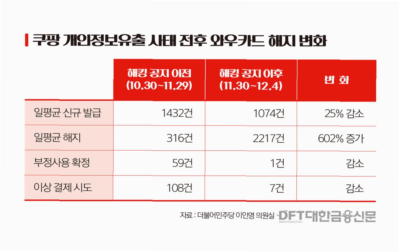 A.개인정보 유출 사실이 알려진 후, 쿠팡의 카드 결제 금액은 하루 평균 56억원씩 감소했습니다.