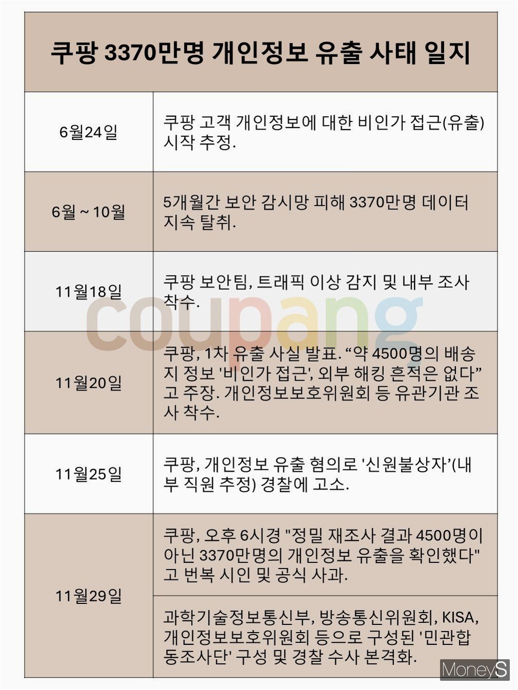 A.쿠팡에서 3370만 개의 고객 계정 정보가 유출되었습니다.