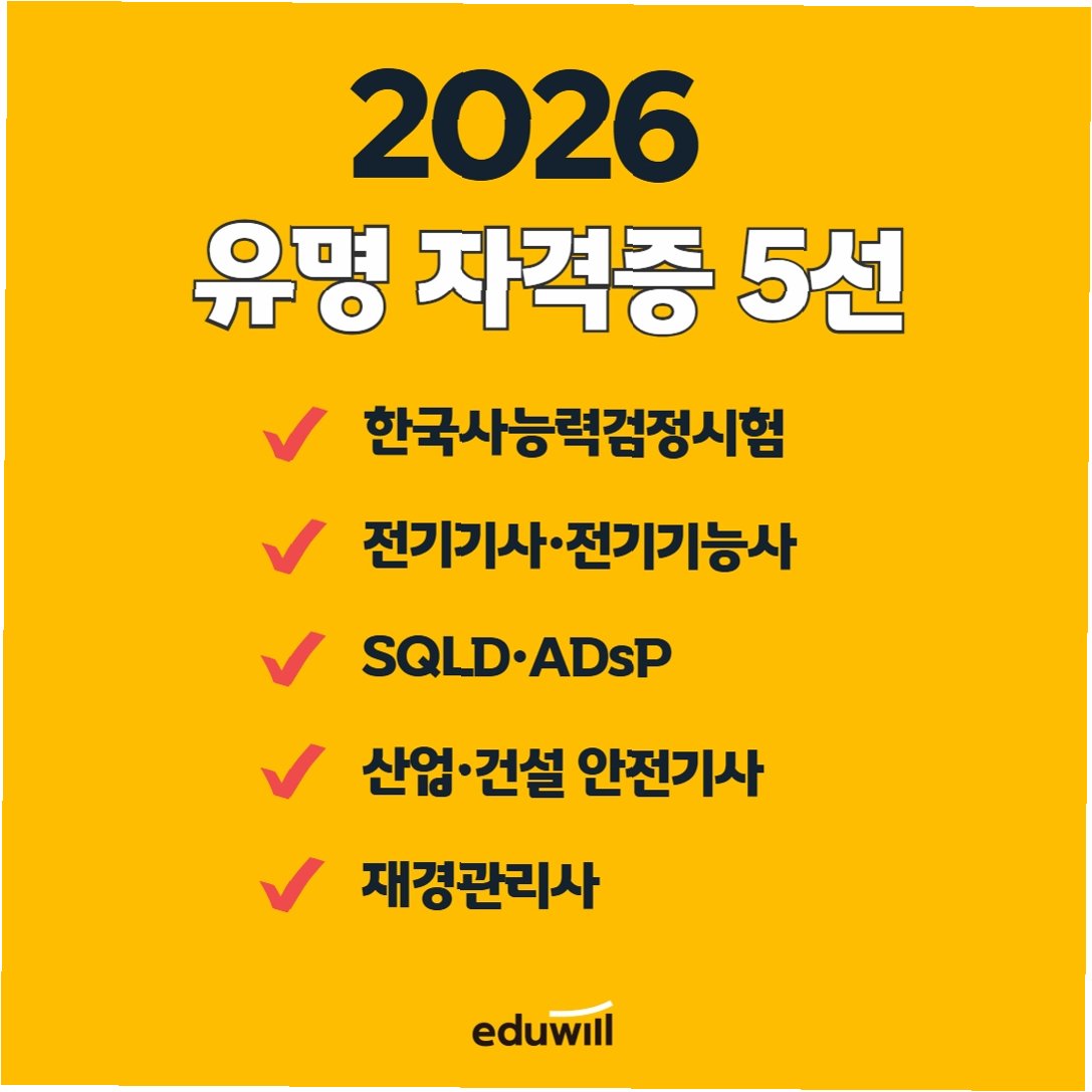 취업 시장의 지형이 급변하는 가운데, 어떤 자격증이 미래를 보장할 수 있을까요? 에듀윌의 발표를 통해 2026년 주목해야 할 유망 자격증 5선을 알아보고, 성공적인 커리어를 위한 전략을 세워보세요. 변화하는 시대에 발맞춰, 당신의 가치를 증명할 기회가 눈앞에 펼쳐집니다. 지금 바로, 미래를 위한 투자를 시작하세요!