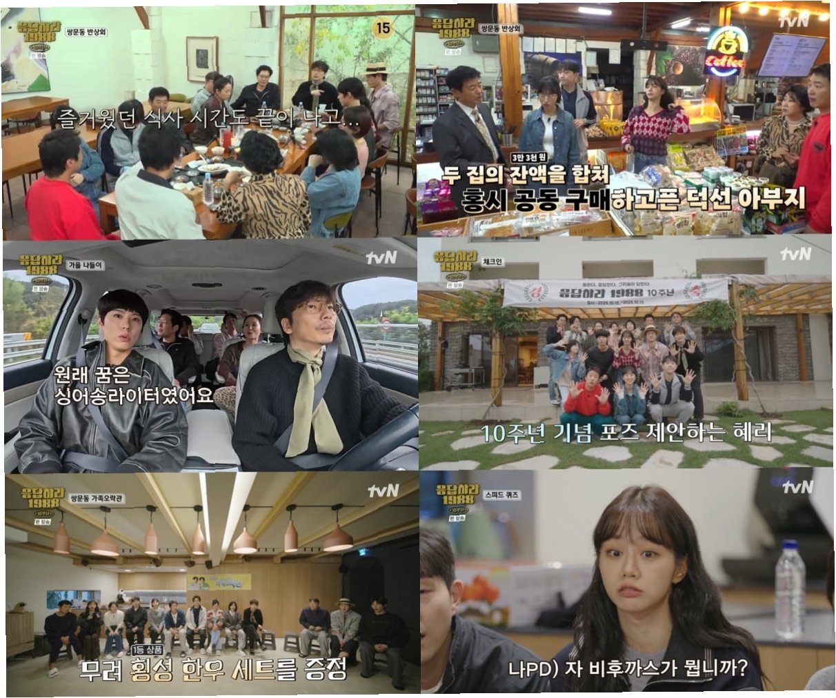 '응답하라 1988' 출연진은 10년 만에 한자리에 모여 1박 2일 여행을 떠났습니다. 성동일, 이일화, 라미란, 김성균, 최무성, 김선영, 류재명, 류혜영, 고경표, 안재홍, 이동휘, 최성원, 이민지 등 드라마의 주역들이 모두 참여하여 시청자들의 기대감을 높였습니다. 방송 초반에는 배우들의 일상적인 대화와 게임, 서로를 향한 반가운 모습들이 그려지며 시청자들에게 훈훈함을 선사했습니다.