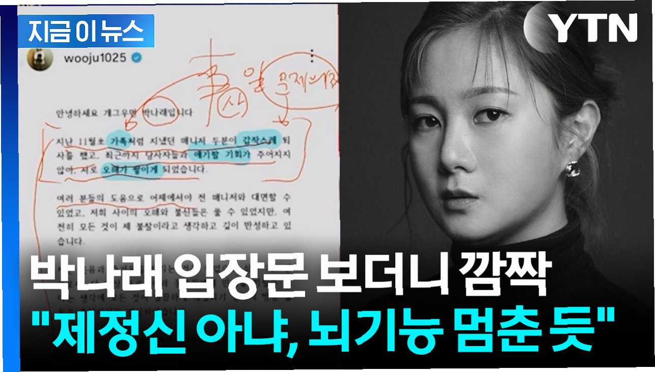 박나래는 16일 공개한 ‘마지막 입장문’에서 현재 제기된 사안들에 대해 사실관계를 확인하기 위해 법적 절차를 진행하고 있다고 밝혔습니다. 그녀는 이 과정에서 추가적인 공개 발언이나 설명을 하지 않겠다는 입장을 밝혔습니다. 박나래는 이 사안을 개인적인 감정이나 관계의 문제가 아닌, 공식적인 절차를 통해 객관적으로 확인해야 할 문제라고 판단하고 있습니다. 하지만, 이러한 입장 발표에도 불구하고, 대중들의 비판적인 시선은 여전히 거세지고 있습니다. 박나래의 향후 행보가 주목되는 가운데, 그녀가 어떻게 이 위기를 극복해 나갈지 귀추가 주목됩니다.