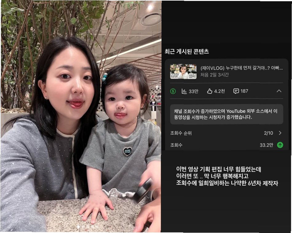 김다예, 딸 재이 유튜브 영상 조회수 폭발에 '뿌듯함' 만끽