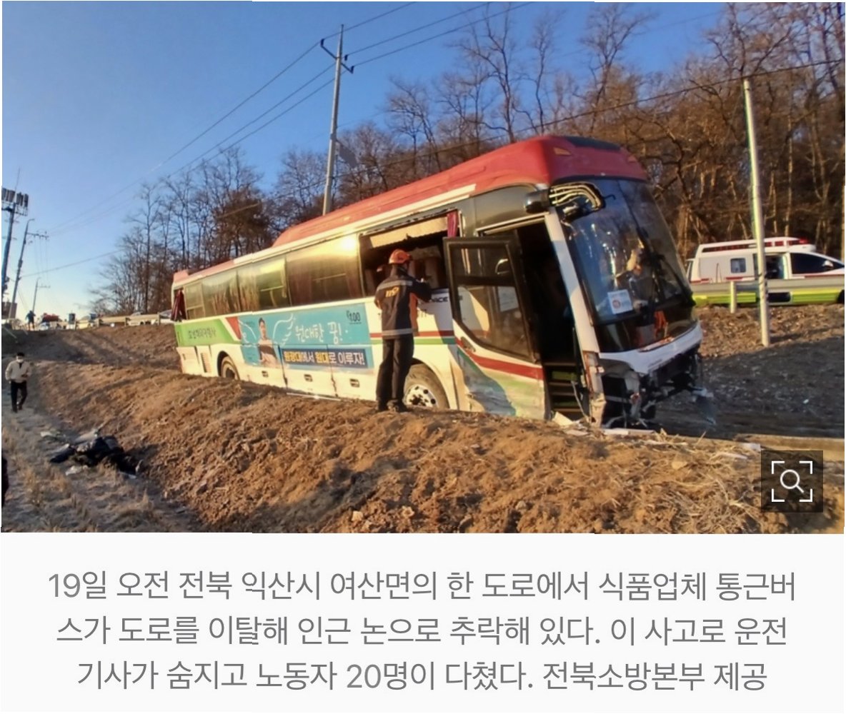 전북 익산시에서 안타까운 사고가 발생했습니다. 회사 통근버스가 농수로로 추락하며 운전기사가 사망하고 승객 20여 명이 다치는 사고가 일어났습니다. 이 사고는 오전 7시경 익산시 여산면의 한 논길에서 발생했으며, 버스는 농수로에 전복된 상태로 발견되었습니다.